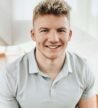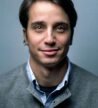 A large digital billboard on top of a multi-story building displays an advertisement featuring a person swimming underwater, wearing bright red swimwear against a vibrant turquoise background. Below, the building features several windows with reddish-brown awnings and some signage near the bottom.